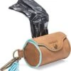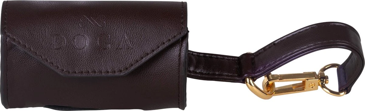 DOGA Honden Poepzakhouder – Poepzakjeshouder – Dispenser – Bruin – Goud – Vegan Leer – Bijpassende Riem En Halsband Mogelijk