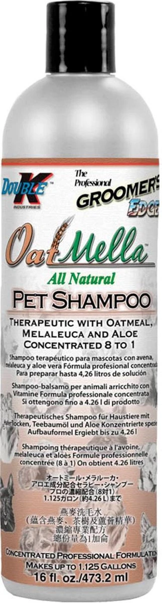 Oat Mella traditionele shampoo met de genezende en kalmerende eigenschapen van Oatmeal Melaleuca (tea tree olie) en Aloë dit alles in een rijke therapeutische shampoo gevoegd. Deze therapeutische shampoo is huid kalmerend. De unieke formule zal helpen geuren die de hond met een probleemhuid bij zich heeft te verwijderen. Deze natuurlijke formule is zeer geschikt voor honden & katten.(therapeutisch)