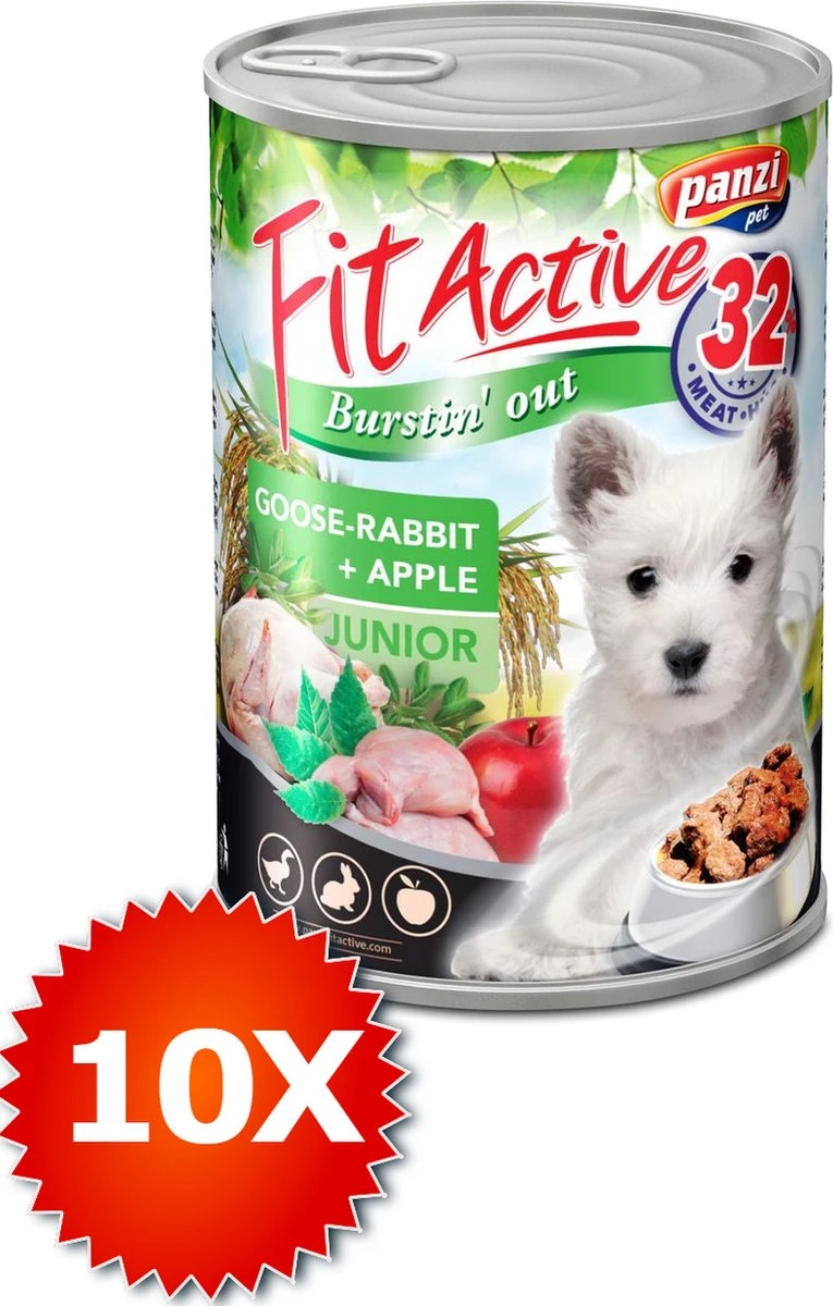 Fit Active – Hondenvoer – Blikvoer – Natvoer Hond – Puppy – Goose & Rabbit – 10 X 415g