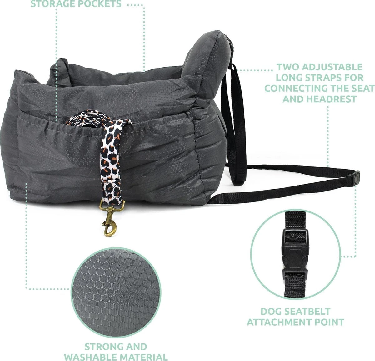 Studio Proud – Honden Autostoel – Autozitje – Automand – Zeer Luxe Hondenmand Voor In De Auto – Comfortabele Honden Autozitje – Antraciet – Zeer Makkelijk Schoon Te Maken – Veilig Auto Bench Voor Puppy En/of Hond