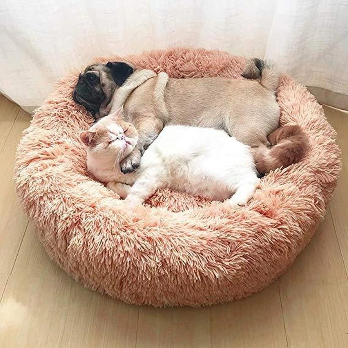 Topmast Fluffy Donut Dierenkussen – Hondenmand – Kattenmand – Superzacht – Wasbaar – 65 Cm – Camel – M