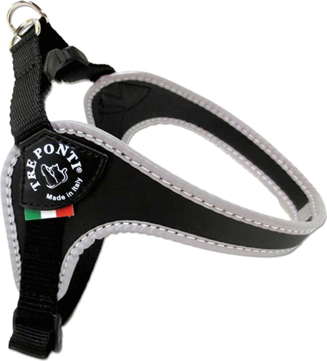 Tre Ponti Fibbia, speciaal voor kleine en mediumhonden Wanneer je op zoek bent naar een fijn, nieuw tuig voor je hond, wil je natuurlijk dat comfort en kwaliteit hoog in het vaandel staan. Met Tre Ponti ben je aan het juiste adres. Tre Ponti is een Italiaans merk dat kwaliteit en een comfortabele pasvorm serieus neemt. Alle tuigen zijn ontworpen en handgemaakt in Italië. De Tre Ponti Fibbia Reflective tuigen zijn geschikt als wandeltuigjes voor zeer kleine tot medium honden.