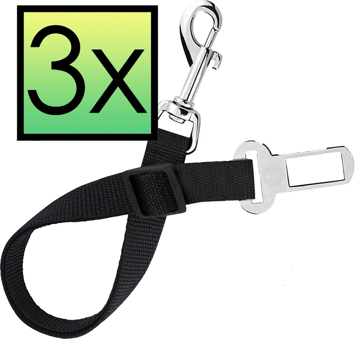 Deze verstelbare hondenriem autogordel (3 stuks) van Nomfy is de perfecte combinatie tussen optimale comfort en veiligheid De zwarte autogordel voor hondentuig van Nomfy garandeert een veilige reis voor jou, je hond en andere weggebruikers. Doordat de hondenriem auto in lengte verstelbaar is, kan deze voor zowel grote als kleine honden gebruikt worden. Verschillende lengtes van de hondengordel en de roterende karabijnhaak zorgen voor optimaal comfort en veiligheid voor je hond tijdens een autorit. Je trouwe viervoeter kan gemakkelijk gaan liggen, zitten of staan, zonder onderweg gevaar te veroorzaken. Gebruik de hondenriem eenvoudig door de karabijnhaak aan de halsband van je hond te bevestigen en de andere kant in de veiligheidssluiting in je auto te klikken. Twee simpele stappen en je bent klaar om te gaan! Deze hondenriem autogordel is niet geschikt voor de auto’s van het merk Volvo. Deze verpakking bevat 3 stuks hondenriem auto.